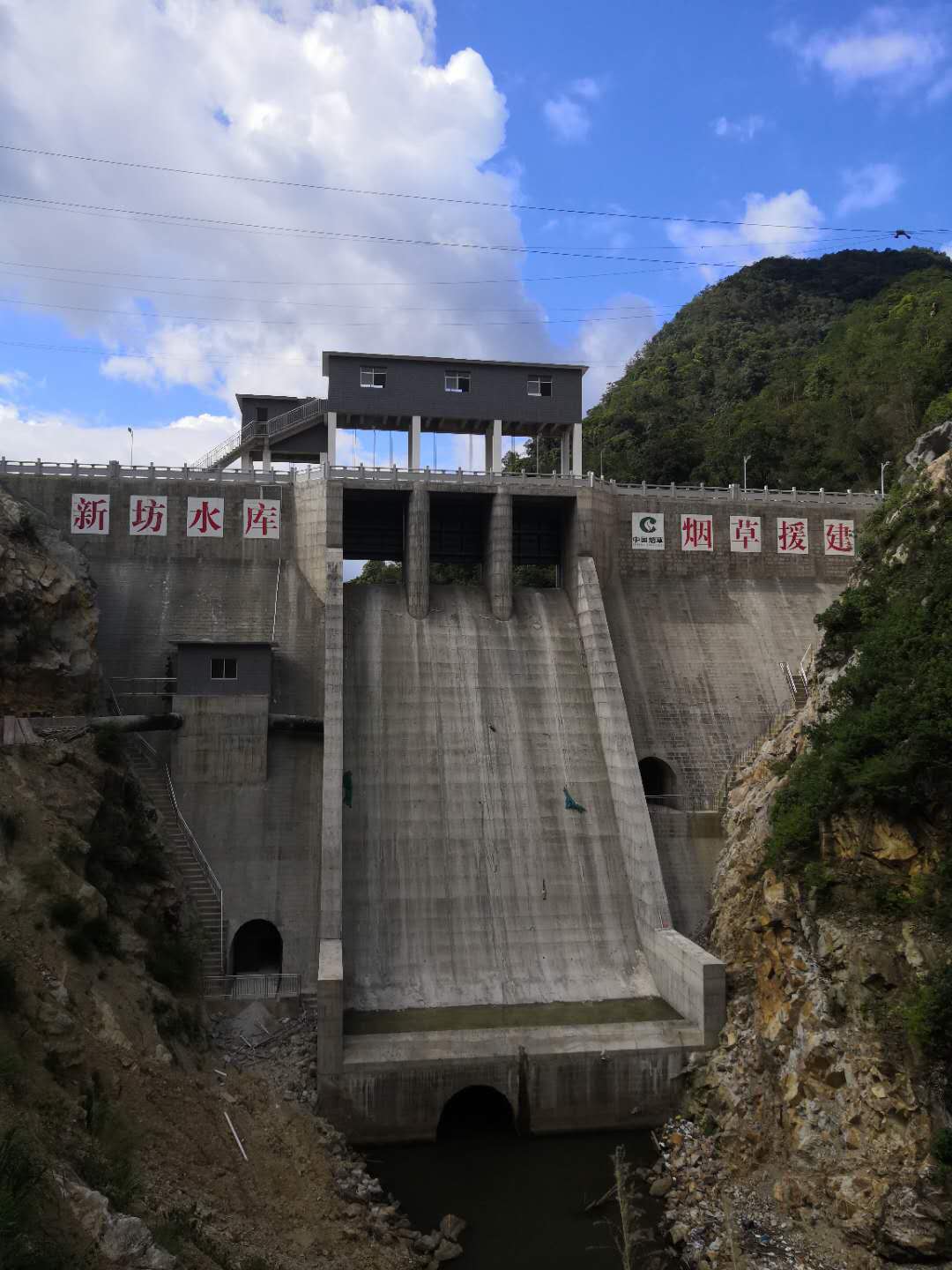 福建上杭新坊水庫大壩、啟閉機(jī)、供水管道、管理房。