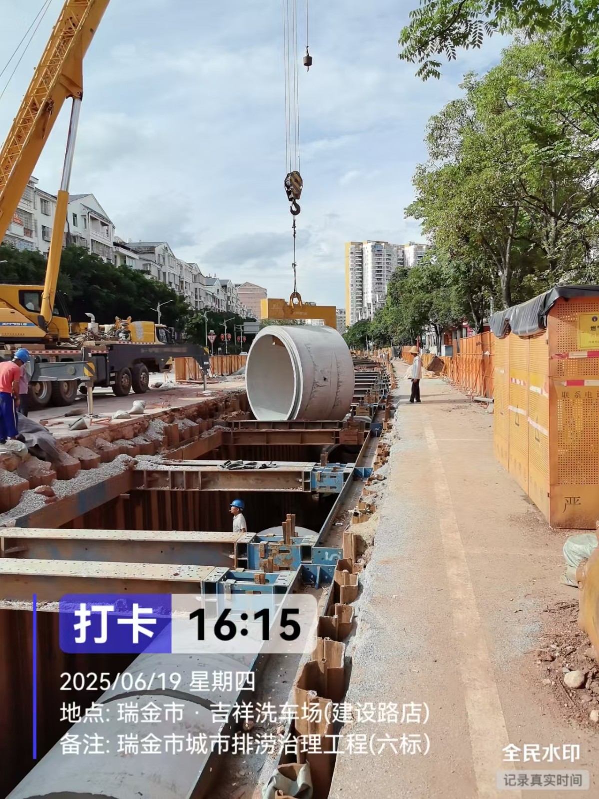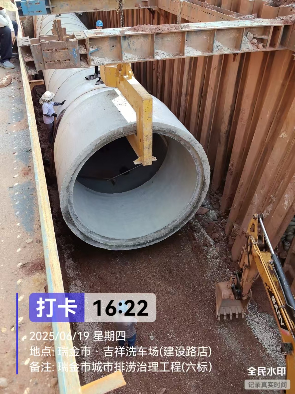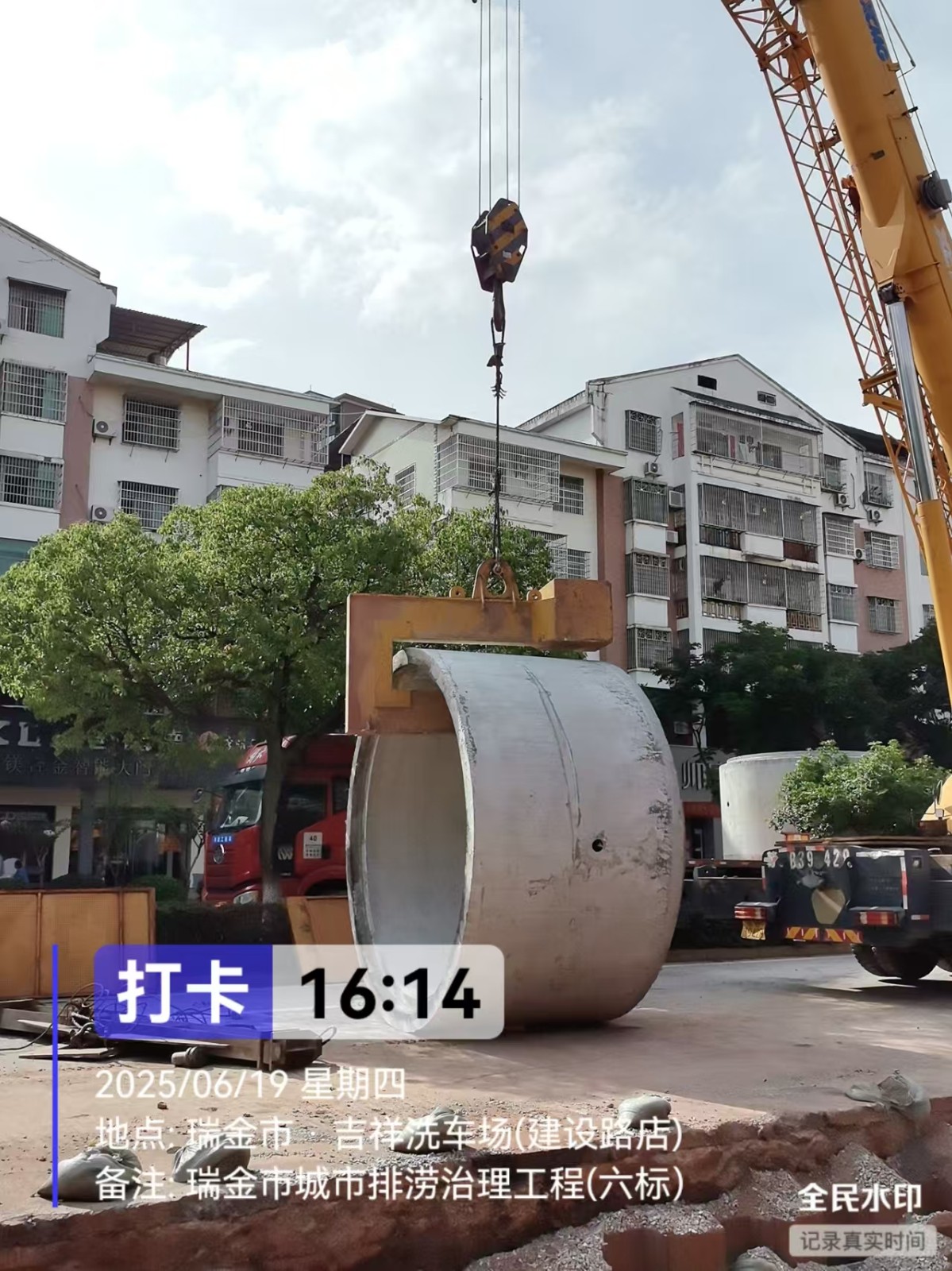 瑞金市城市排澇治理工程內(nèi)徑3米混凝土管道吊裝施工